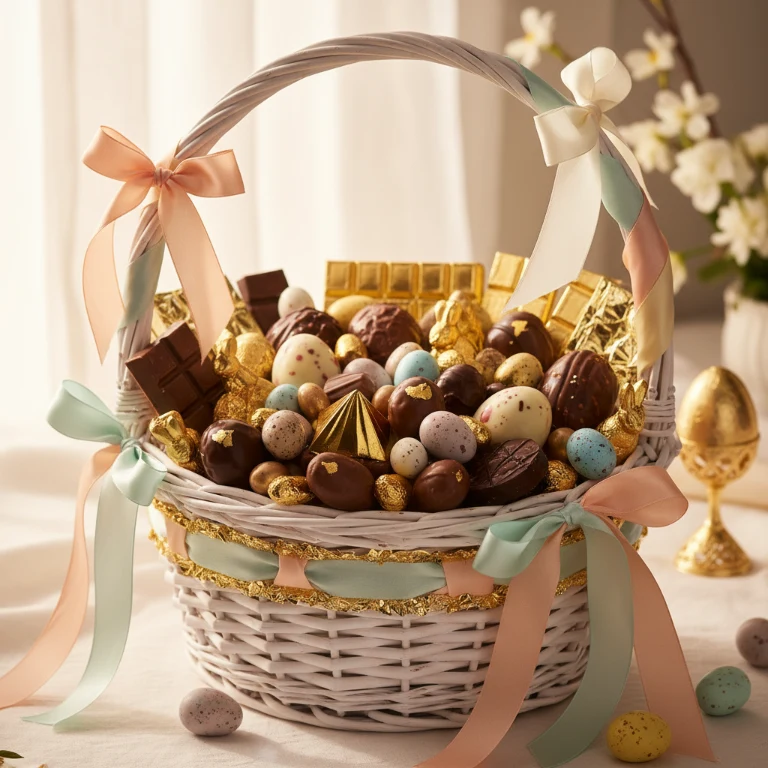 For moms with a sweet tooth, a chocolate-themed basket is always a win. Include a mix of gourmet chocolates, truffles, and Easter candies arranged beautifully with decorative fillers and ribbons.