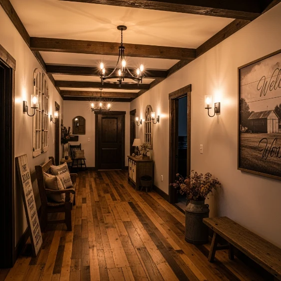 Keep wall colors light to balance the darker floor tones. Add simple runners or rugs for comfort and texture. This flooring choice gives your hallway a lived-in, authentic farmhouse appeal.