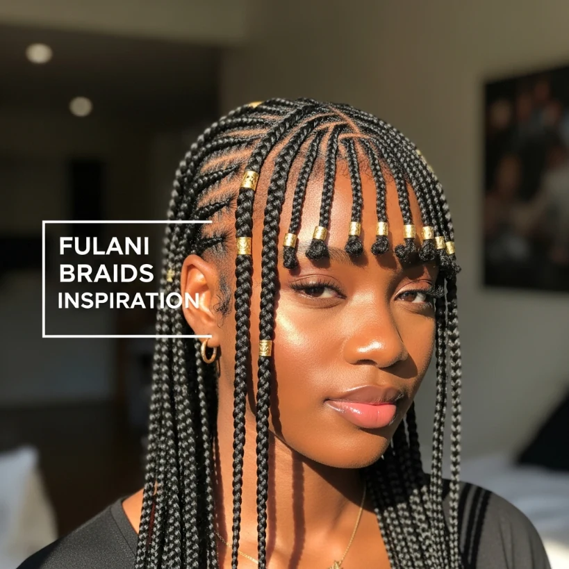 Side-swept Fulani braids create a romantic and soft look. Instead of a straight fall, the braids cascade over one shoulder, framing the face beautifully. This styling technique adds instant elegance and makes the hairstyle feel more dynamic.