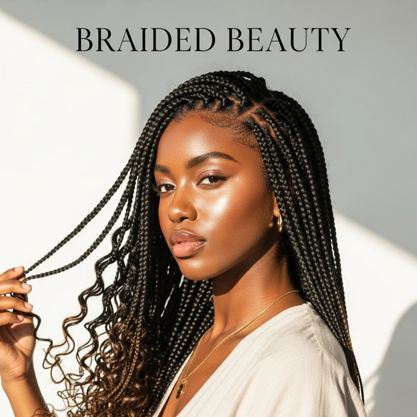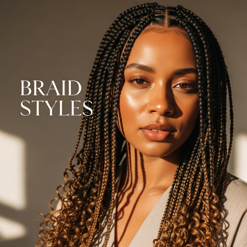 Fulani braids with curly ends combine structured braiding with soft romantic texture. The braids start neatly at the scalp and transition into loose curls at the tips, creating movement and volume. This mix of textures makes the hairstyle feel playful yet elegant and gives the illusion of thicker hair.