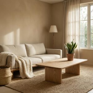 Soft beige introduces warmth and depth while maintaining the minimalist essence central to Japandi design. This tone feels organic and comforting, especially when layered through walls, textiles, and rugs. It avoids harsh contrasts, allowing the room to feel cohesive and effortlessly balanced.