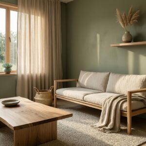 Incorporate muted sage through painted walls or accent decor like cushions and ceramics. Balance it with cream or beige textiles to maintain softness. This shade is ideal for spaces where you want subtle color while preserving the calm, uncluttered aesthetic that defines Japandi interiors.
