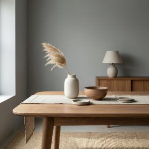 Greige blends gray and beige into a perfectly balanced neutral that works beautifully in Japandi interiors. It brings sophistication without feeling cold, offering a versatile canvas for layered textures. This understated hue complements stone, wood, and linen effortlessly.