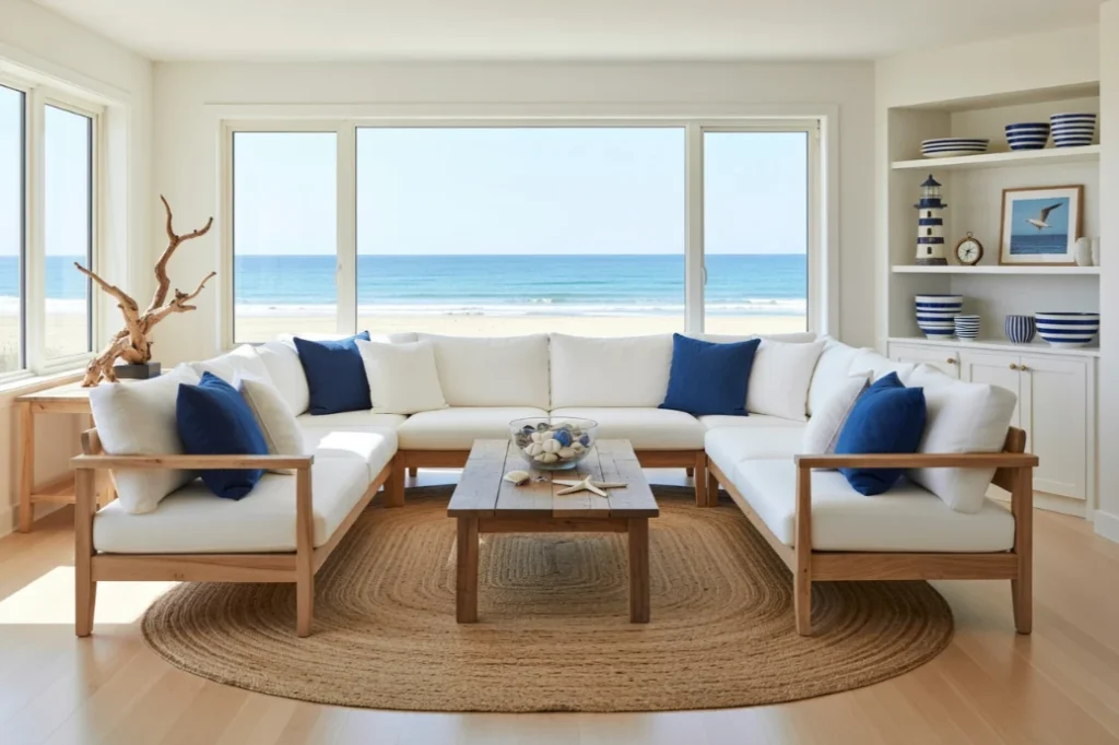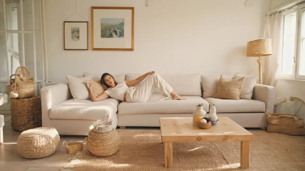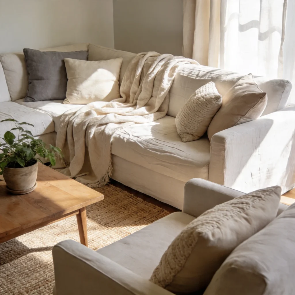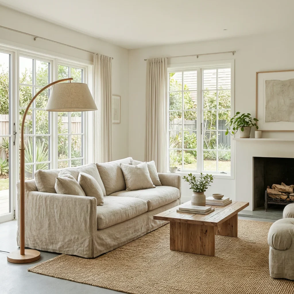 Pair a linen sofa with light wood furniture and soft textured cushions. Keep styling minimal to maintain that airy feeling. This look creates a calm retreat perfect for warm afternoons and relaxed summer evenings with family or guests.