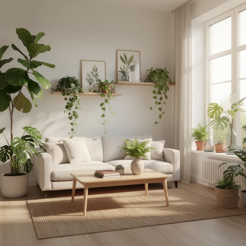 Indoor plants are essential for creating a lively summer vibe. Large leafy plants and smaller potted greens add color and freshness while improving the overall mood of the space.