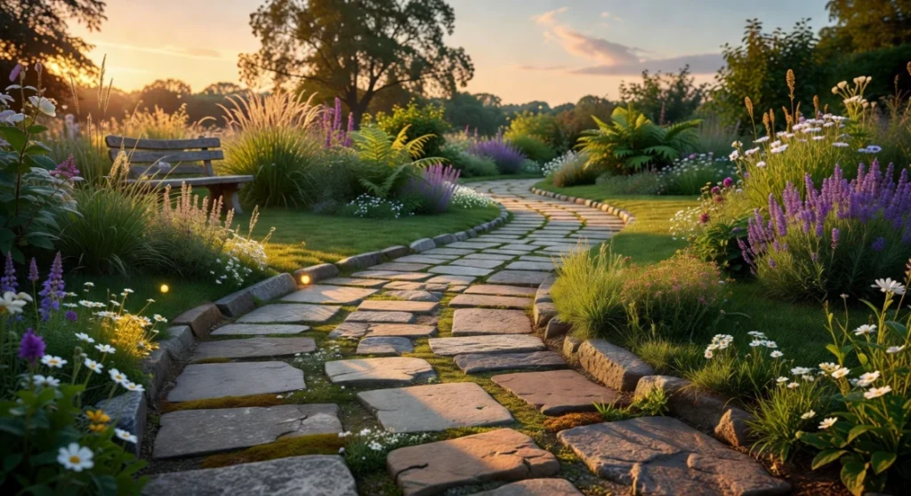 17. Stepping Stone Path Through a Wildflower Meadow