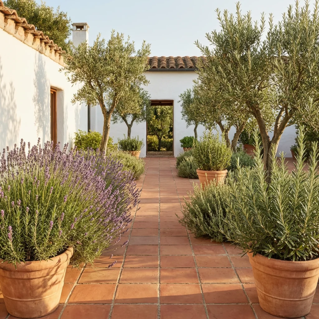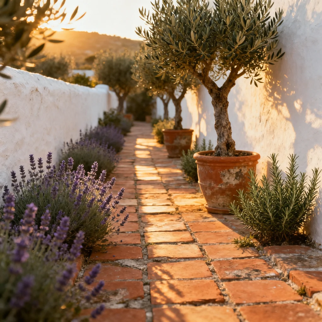 Terracotta pavers weather beautifully with age, developing a deeper, more varied patina as seasons pass. They are porous by nature, which means they absorb and release heat slowly — pleasant underfoot even on the hottest summer days. Flanked by lavender, rosemary, salvias, and olive trees in matching terracotta pots, this walkway style creates a complete Mediterranean landscape experience that engages all the senses. It is a timeless, deeply romantic garden path idea that generates consistent high engagement from the global Pinterest community.
