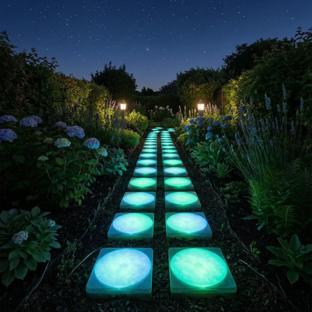 Glow-in-the-dark luminescent pavers represent one of the most exciting and innovative developments in modern outdoor walkway design. These specially manufactured pavers contain phosphorescent aggregates that absorb natural daylight and release it as a soft, ethereal glow after dark — no electricity required. The effect transforms an ordinary garden path into something genuinely magical at night, creating a walkway that seems to emerge from the darkness like a scene from a fantasy film.