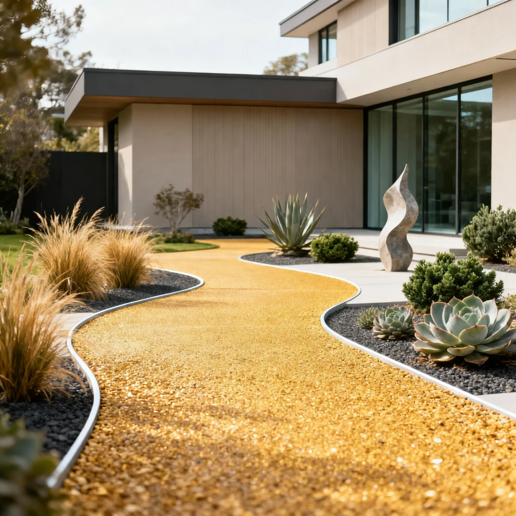 Available in a wide range of aggregate colours — warm golden, cool grey, terracotta, and even multicolour blends — resin bound paths can be tailored to complement any house style or garden palette. The permeable surface satisfies sustainable urban drainage requirements and prevents puddle formation after heavy rain. Maintenance is minimal — occasional brushing and periodic jet washing keeps the surface looking fresh for many years. Resin bound gravel walkways have become one of the fastest-growing front garden upgrades shared on Pinterest, particularly popular with homeowners seeking a polished, low-maintenance alternative to traditional paving.