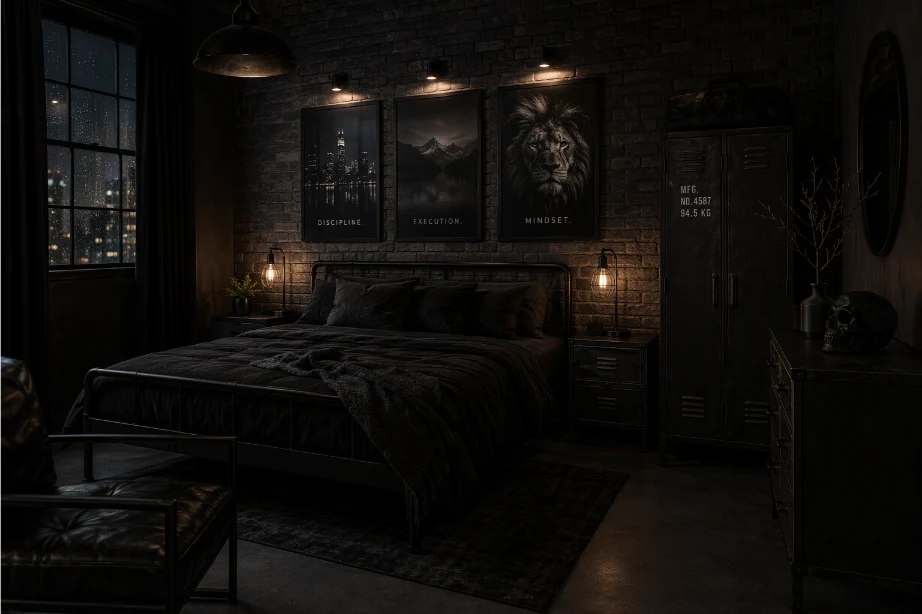 13. Industrial Black Bedroom