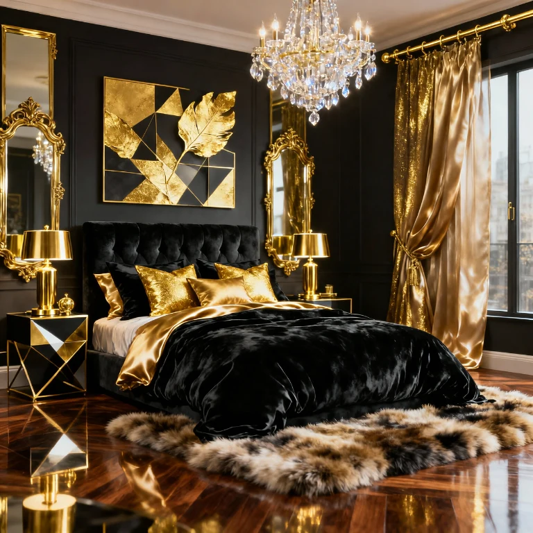 8. Black and Gold Glam Style