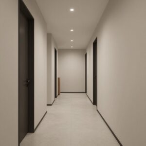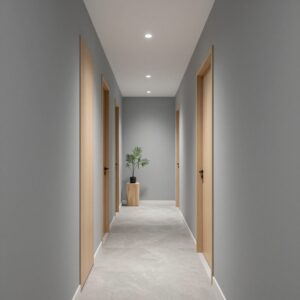 A monochrome palette in warm gray or beige creates a cohesive and tranquil hallway. Layer subtle tonal variations to avoid flatness while maintaining simplicity.