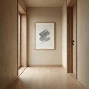 Select one or two minimalist art pieces to decorate hallway walls. Abstract prints or nature-inspired sketches in muted tones work beautifully. Keep frames simple in wood or black for cohesion.