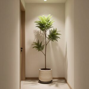 Keep planters neutral and natural in texture. Position the plant where it receives light while maintaining flow. This natural element strengthens the connection between interior design and nature.