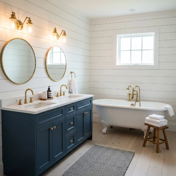 Use navy in smaller spaces for impact. This palette feels both classic and fresh.