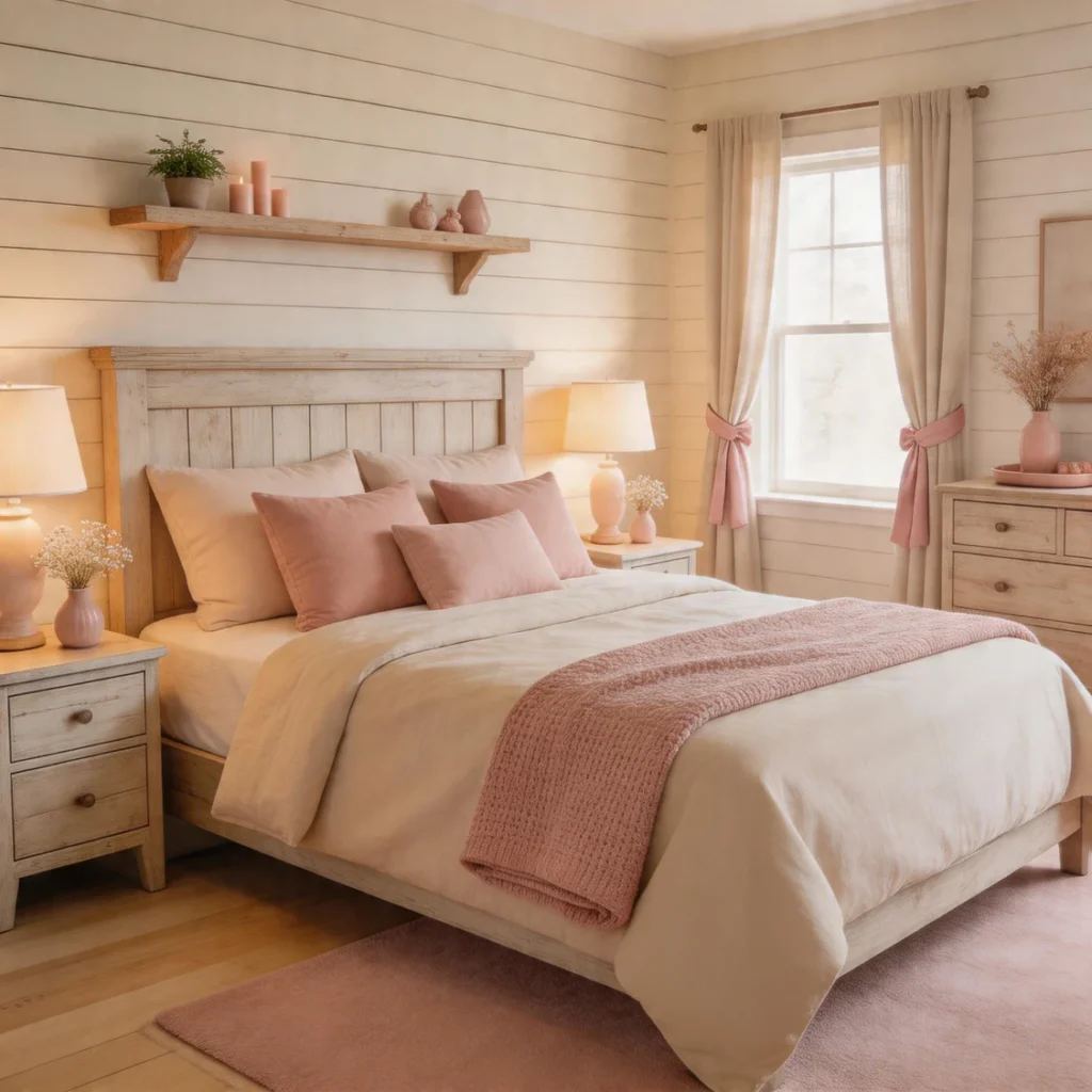 Use blush through textiles or décor accents. It adds charm without overpowering farmhouse simplicity.