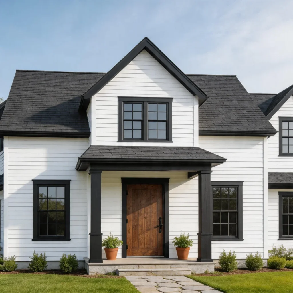 Use charcoal for accent walls, cabinetry, or exterior trim. The balance keeps the space bold but approachable.