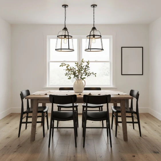Black accents ground farmhouse interiors and add modern sophistication. Combined with natural wood, the look feels balanced and bold.